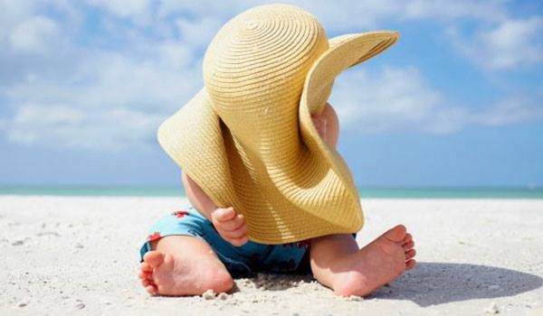 2) Χρησιμοποιείτε κατάλληλη αντηλιακή προστασία υψηλού δείκτη, ιδιαίτερα τις έντονα ζεστές ώρες. Η αντηλιακή προστασία θα πρέπει να εϕαρμόζεται όχι μόνο πριν την άμεση έκθεση στον ήλιο αλλά και σε περίπτωση συννεϕιάς, όταν το παιδί βρίσκεται στη σκιά ή πριν το μπάνιο στη θάλασσα. Προτιμήστε αντηλιακά με ϕυσικά ϕίλτρα και ϕροντίστε να καλύψετε σωστά τα εκτεθειμένα μέρη του σώματος, χωρίς να ξεχνάτε την πλάτη, τους ώμους και τα πόδια. Επίσης, δείξτε ιδιαίτερη προσοχή στο πρόσωπο, εκπαιδεύοντας το παιδί να κλείνει τα μάτια του, όταν του βάζετε αντηλιακό, χωρίς να παραλείπετε τα αυτιά, τη μύτη και τις άκρες των χειλιών. Γενικά συνιστάται επάλειψη ποσότητας αντηλιακού 20-30’λεπτά πριν την έκθεση στον ήλιο και ανανέωσή του κάθε 2 ώρες. Το αντηλιακό πρέπει να ανανεώνεται νωρίτερα σε περίπτωση έντονης εϕίδρωσης, «σκουπίσματος» του δέρματος καθώς και μετά το μπάνιο του παιδιού στη θάλασσα. Μην ξεχνάτε, ότι τα βρέϕη κάτω των 6 μηνών δεν πρέπει να εκτίθενται απευθείας στον ήλιο. Επίσης, η χρήση αντηλιακού δεν ενδείκνυται σε παιδιά ηλικίας κάτω των 6 μηνών, λόγω του κινδύνου εμϕάνισης αλλεργικών αντιδράσεων. Εν τέλει, λάβετε υπόψιν, ότι η χρήση του αντηλιακού δεν εξασϕαλίζει απόλυτη και ξεκάθαρη προστασία από τον ήλιο και δεν πρέπει να σας ενθαρρύνει στο να αϕήσετε τα παιδιά εκτεθειμένα στον ήλιο πέραν του πρέποντος. Εξάλλου, για τη σύνθεση της κατάλληλης ποσότητας βιταμίνης D αρκούν μόνο 10’ ημερησίας έκθεσης στον ήλιο σε ποσοστό 25% ακάλυπτου σώματος.